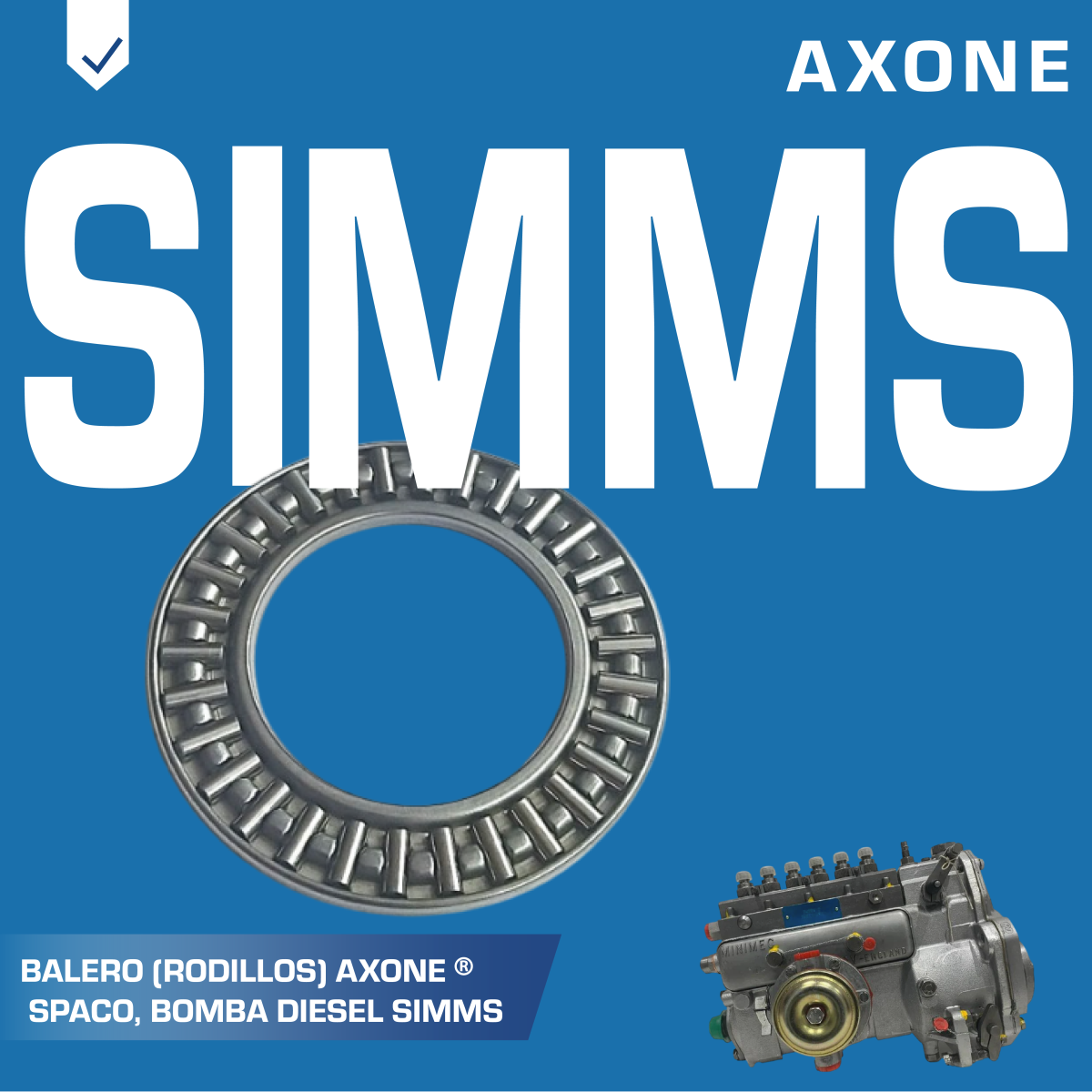 El balero (rodillos) 513279 Spaco para bomba diésel Simms asegura un movimiento suave y preciso dentro del sistema de inyección, mejorando la eficiencia y prolongando la vida útil de la bomba. Es una alternativa económica y confiable frente a repuestos originales, respaldada por 90 días de garantía AXONE.