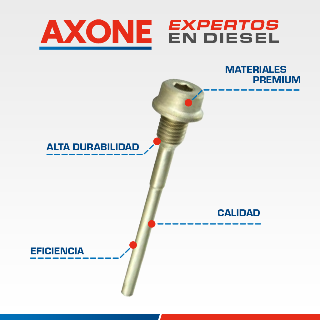 El birlo guía 24726 para bomba diésel Stanadyne asegura un posicionamiento preciso y estable dentro del sistema de inyección, contribuyendo al correcto funcionamiento y durabilidad de la bomba. Compatible con referencias 12206, 12208 y T11923, es una alternativa confiable y económica frente a repuestos originales, respaldada por 90 días de garantía AXONE.