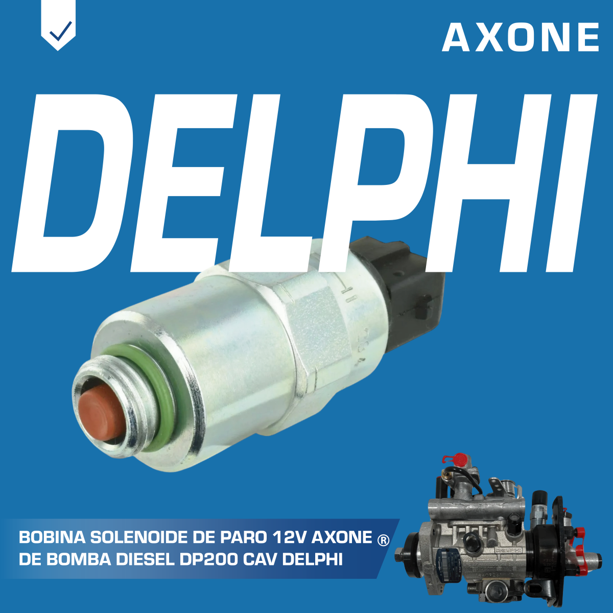 Bobina solenoide de paro 12V 7185-900E para bomba diésel Delphi CAV DP200, asegura corte rápido y confiable del suministro de combustible como alternativa económica a repuestos originales, 90 días de garantía respaldada por AXONE.