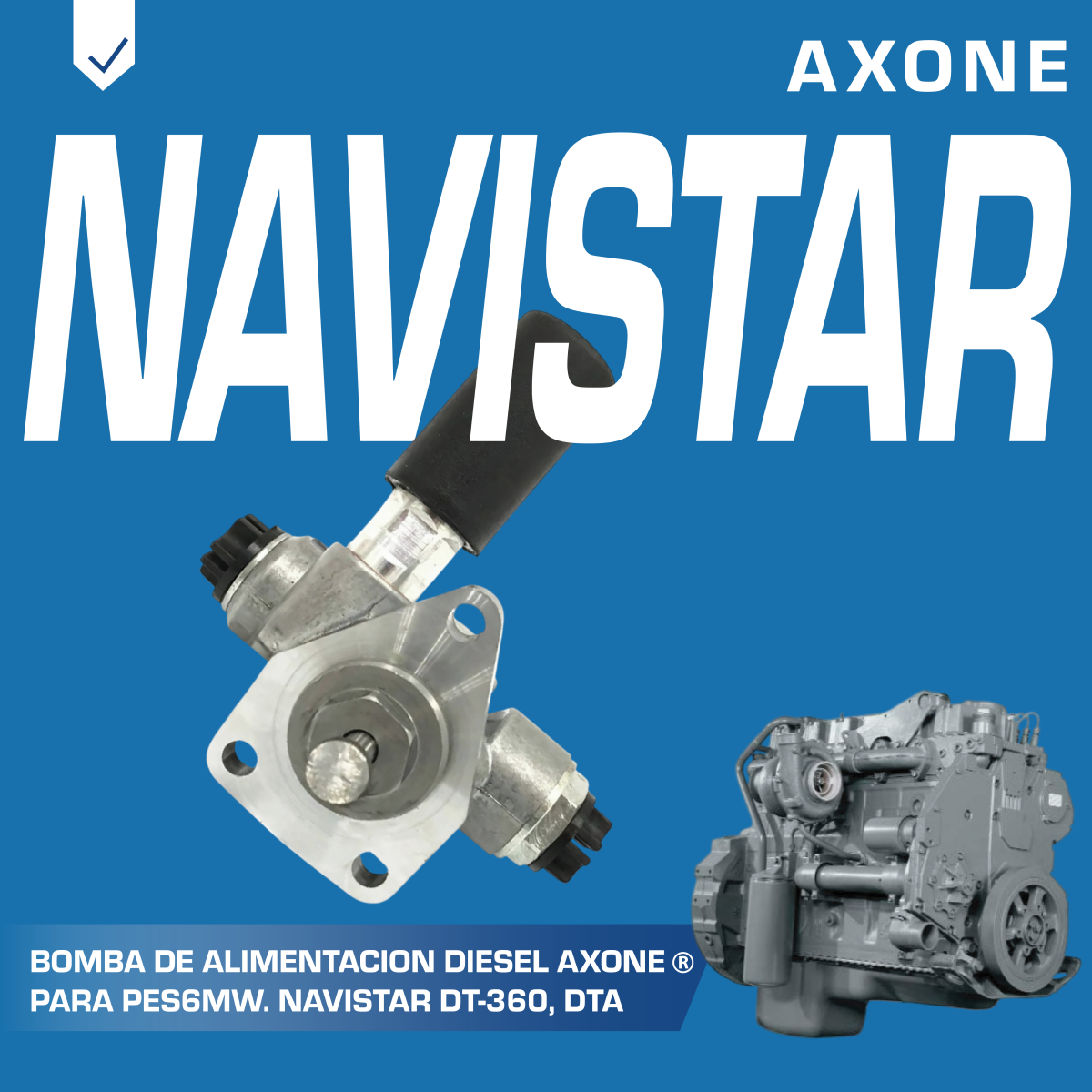 Bomba de alimentación 0440017051 diésel Bosch FP/KG24 PES6MW, compatible con motores Navistar DT-360 y DTA, garantiza suministro constante y confiable de combustible como alternativa económica a repuestos originales, 90 días de garantía respaldada por AXONE.
