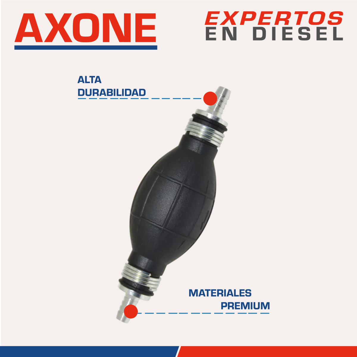 La bomba de cebado manual 9001-088 para sistemas diésel permite una purga eficiente y un suministro inicial confiable de combustible, facilitando el arranque y mantenimiento del motor. Fabricada con materiales resistentes, ofrece rendimiento estable y larga vida útil. AXONE brinda una alternativa económica y de calidad frente a repuestos originales, con 90 días de garantía.