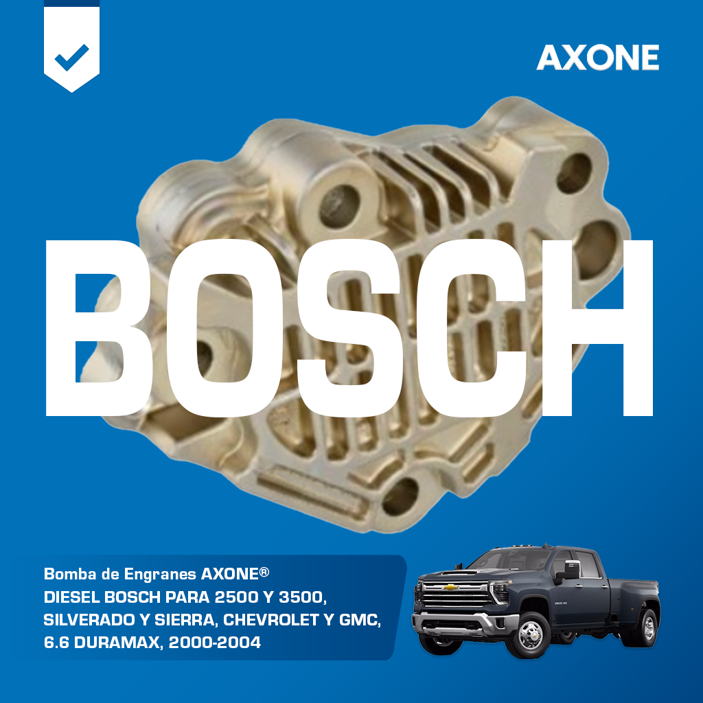 Bomba de engranes 0440020037 diésel Bosch, compatible con Chevrolet Silverado y GMC Sierra 2500/3500 con motor 6.6 Duramax 2000-2004, garantiza suministro estable como alternativa económica a repuestos originales, 90 días de garantía respaldada por AXONE.