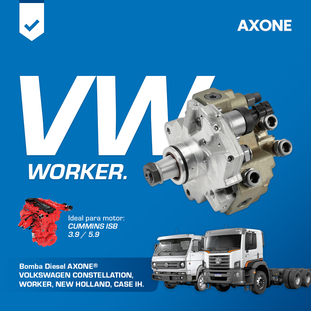 La bomba diésel AXONE 0445020007 Bosch CR CP3 es compatible con Case IH, motores Cummins 3.9 y 5.9 ISB, New Holland, Volkswagen Constellation y Worker, asegurando suministro confiable de combustible. Optimiza eficiencia y durabilidad. Alternativa económica con 90 días de garantía respaldada por AXONE.