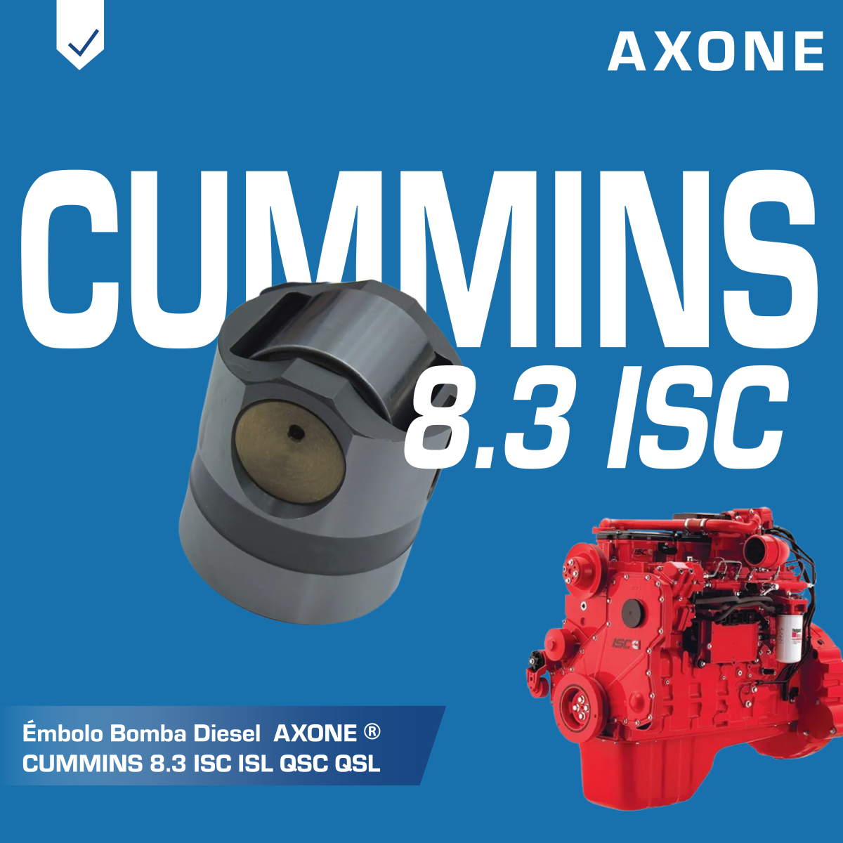 Émbolo/elemento de bomba diésel CAPS II CCR1600, compatible con motores Cummins 8.3, ISC, ISL, QSC y QSL, referencias 2897500, 4903462, 4921431 y C4088593, garantiza presión estable, suministro confiable y durabilidad como alternativa económica a repuestos originales, con 90 días de garantía respaldada por AXONE.