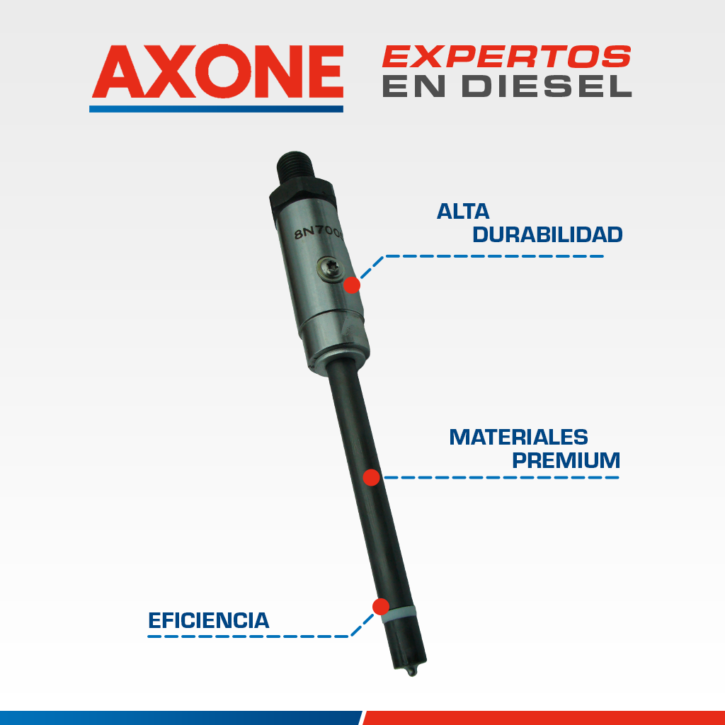 El inyector diésel AXONE 8N7005 tipo lápiz es compatible con motores Caterpillar 3304, 3304B y 3306B, reemplazando la referencia 8N-7005. Garantiza una inyección precisa y confiable del combustible, optimizando la potencia, la eficiencia y la durabilidad del motor. Diseñado para trabajo pesado, asegura un desempeño estable en condiciones exigentes. Es una alternativa económica frente a repuestos originales e incluye 90 días de garantía respaldada por AXONE.