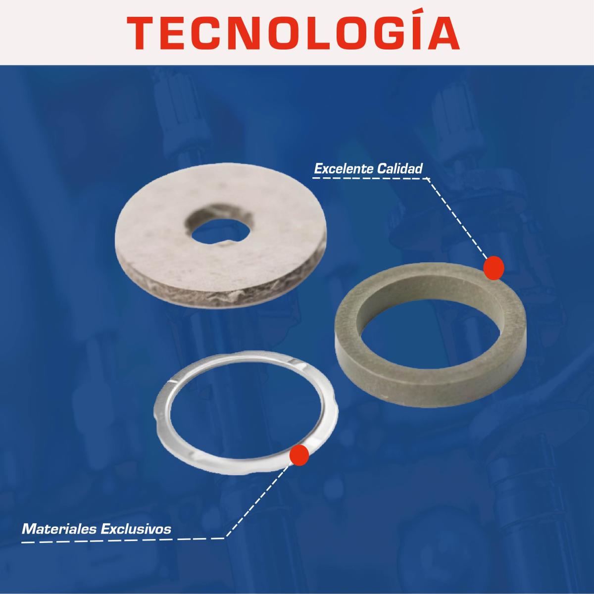 Juego de piezas Bosch F00VC99002 tipo anillo de alta presión para inyector diésel. Diseñado para garantizar sellado preciso, alta resistencia y funcionamiento confiable del sistema de inyección, soportando condiciones de alta presión y evitando fugas de combustible. Ideal para mantenimiento y reemplazo seguro en inyectores diésel, fabricado bajo estrictos estándares de calidad para asegurar durabilidad y desempeño estable. Incluye 90 días de garantía.