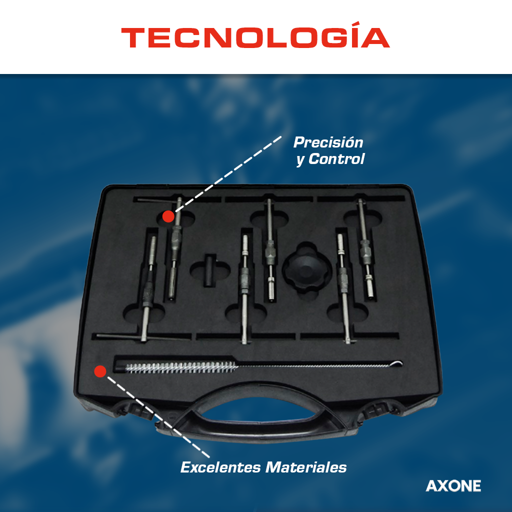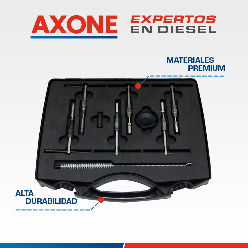 Juego de herramienta 32350043 para válvula UI/UP Detroit versión R3, diseñado para ajuste y reparación precisa, asegura manipulación confiable, prolonga la vida útil de los componentes y mantiene desempeño estable como alternativa económica, con 90 días de garantía respaldada por AXONE.