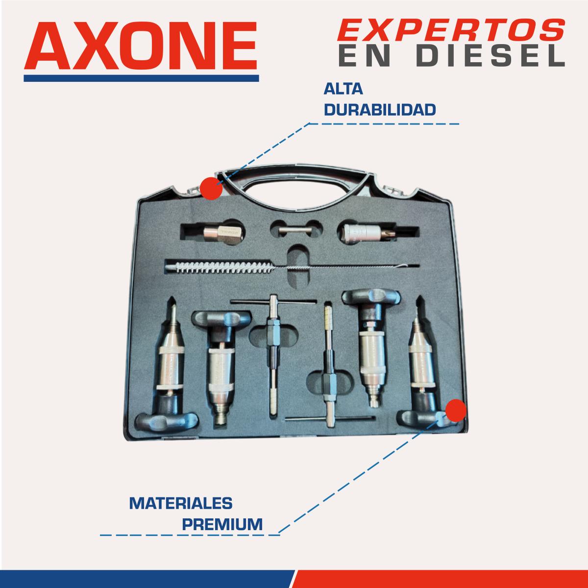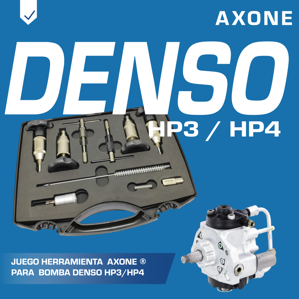 Juego de herramienta 3235036 para bomba diésel Denso HP3 y HP4, diseñado para facilitar montaje y reparación precisa, asegura ajustes confiables, prolonga la vida útil de los componentes y mantiene desempeño estable como alternativa económica, con 90 días de garantía respaldada por AXONE.