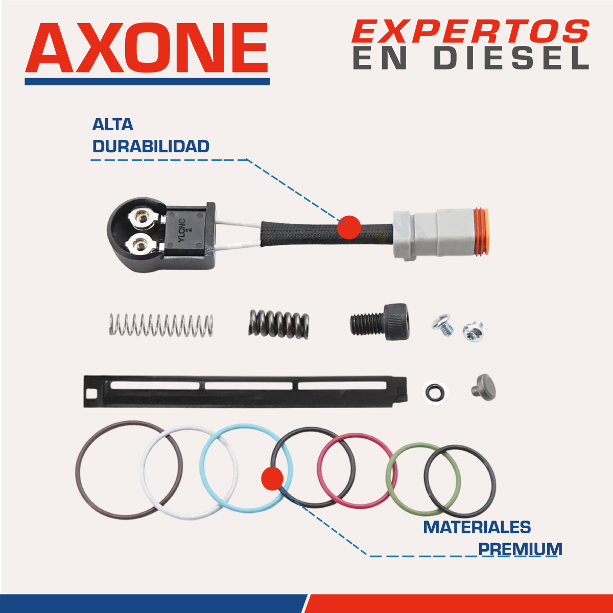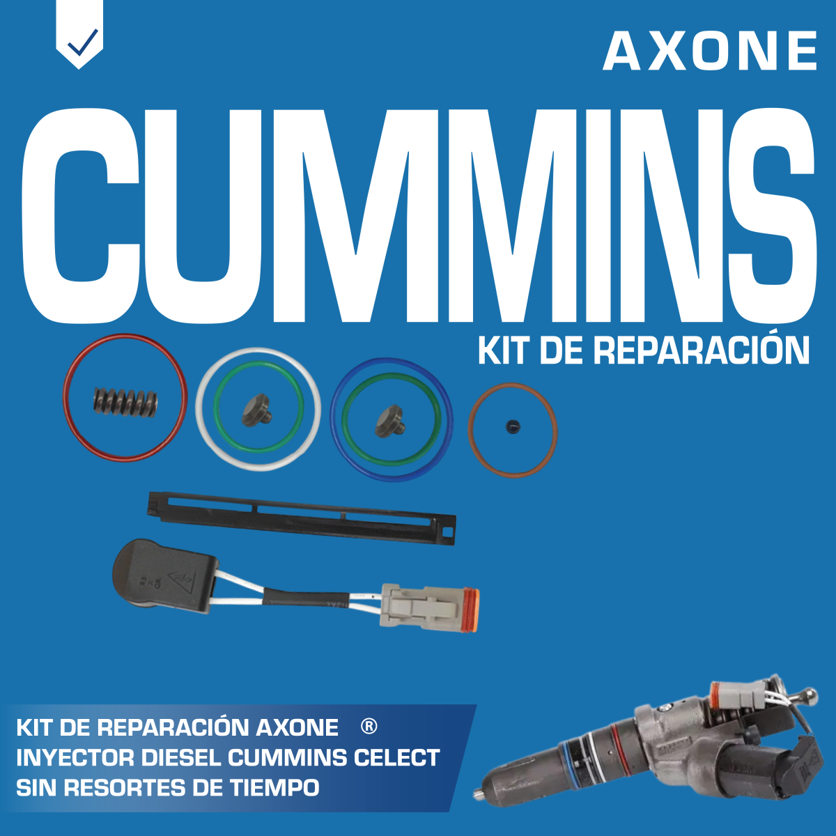 Kit de reparación AXONE 3060002 para inyector diésel Cummins Celect, sin resortes de tiempo. Fabricado con componentes de alta calidad y precisión, restaura el funcionamiento del inyector, prolongando su vida útil y manteniendo la eficiencia del motor. Ideal para mantenimiento de flotillas y talleres diésel especializados.