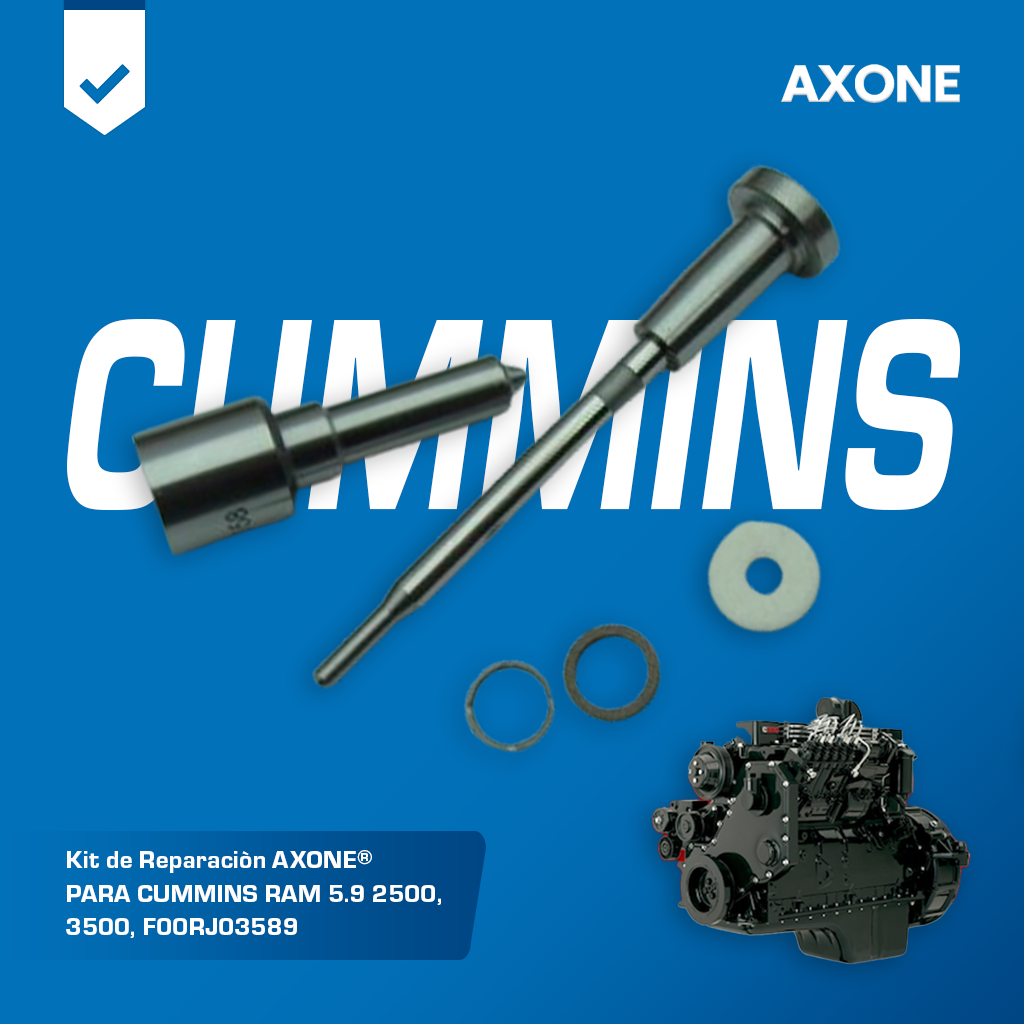El kit de reparación AXONE F00RJ09018 para inyector diésel Bosch CR 0445120018 es compatible con motores Cummins 5.9 en camionetas Dodge Ram 2500 y 3500, además de la referencia F00RJ03589. Incluye componentes de precisión que restauran el desempeño del inyector, asegurando sellado confiable y funcionamiento estable. Fabricado bajo altos estándares de calidad, es una alternativa económica frente a repuestos originales e incluye 90 días de garantía respaldada por AXONE.