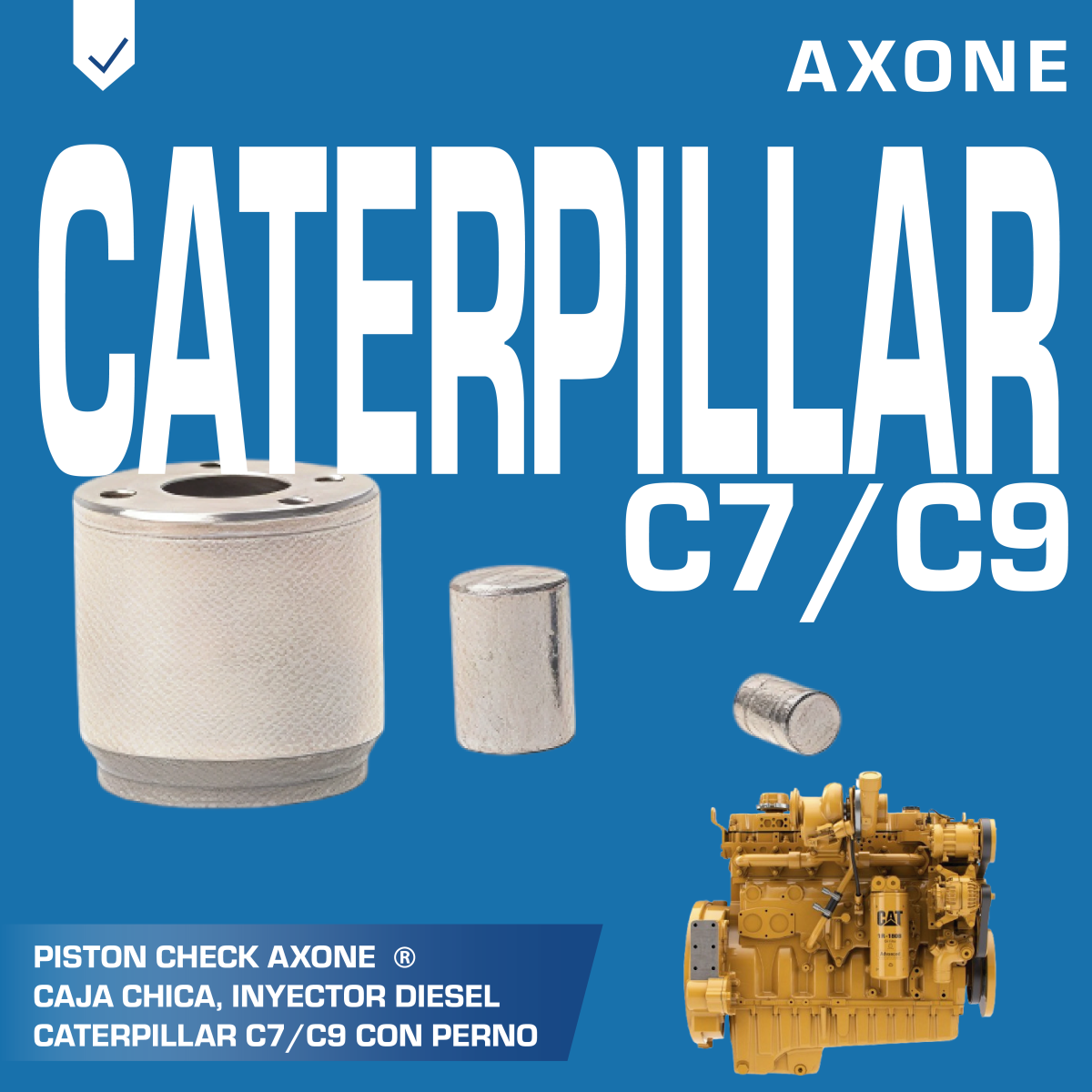 Pistón Check AXONE 216-1660 caja chica con perno, compatible con inyectores diésel Caterpillar C7 y C9. Fabricado con materiales de alta precisión y durabilidad, mantiene el correcto desempeño interno del inyector, optimizando la combustión y asegurando potencia y eficiencia en motores de trabajo pesado.