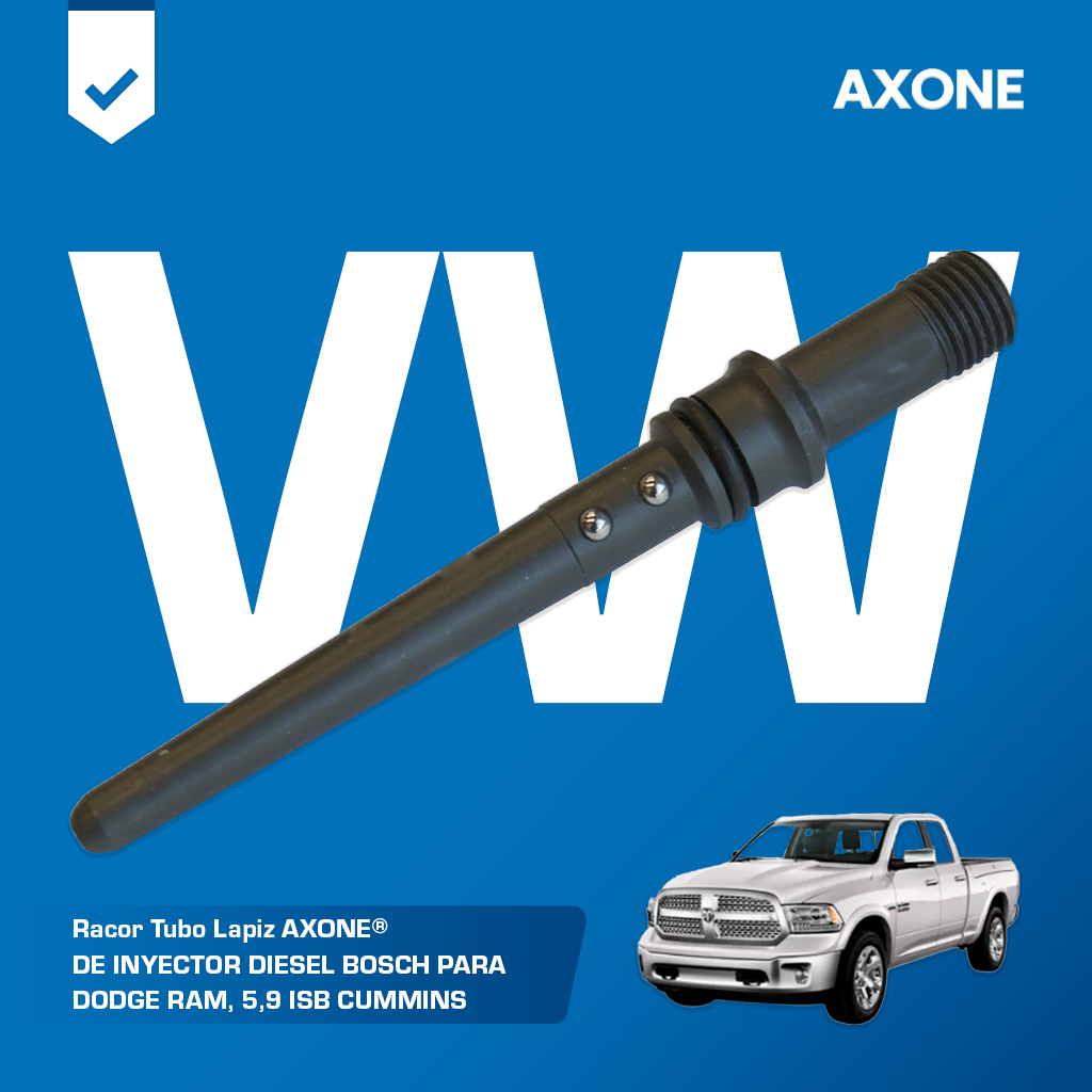 El racor tubo lápiz AXONE F00RJ01572 para inyector diésel Bosch es compatible con motores Cummins 5.9 ISB en Dodge Ram, asegurando un acople seguro y flujo estable de combustible. Optimiza eficiencia y durabilidad del sistema. Alternativa económica con 90 días de garantía respaldada por AXONE.