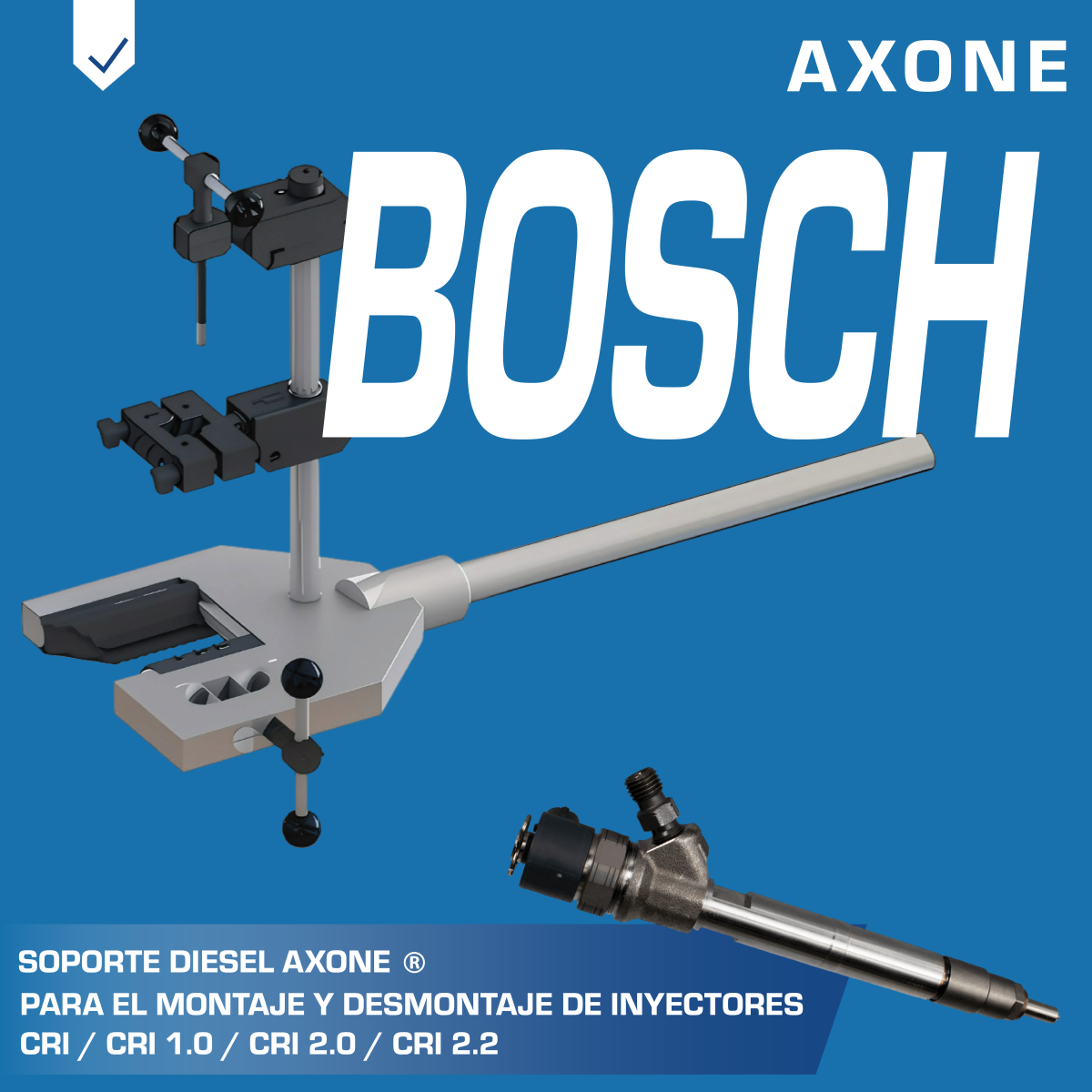 Soporte 3241501 para reparación de inyectores, diseñado para garantizar estabilidad, precisión y eficiencia durante el proceso de servicio. Ideal como alternativa económica a repuestos originales, fabricado con calidad y respaldo de especialistas, con 90 días de garantía AXONE.