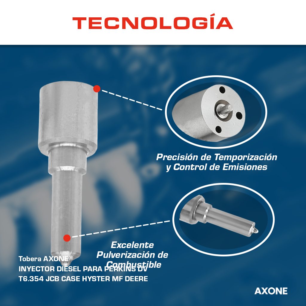 Tobera diésel BDLL150S6576 de inyector Delphi, compatible con motores Perkins DV T6.354 y aplicaciones en JCB, Case, Hyster, Massey Ferguson y John Deere, asegura atomización confiable y rendimiento eficiente como alternativa económica a repuestos originales, con 90 días de garantía respaldada por AXONE.